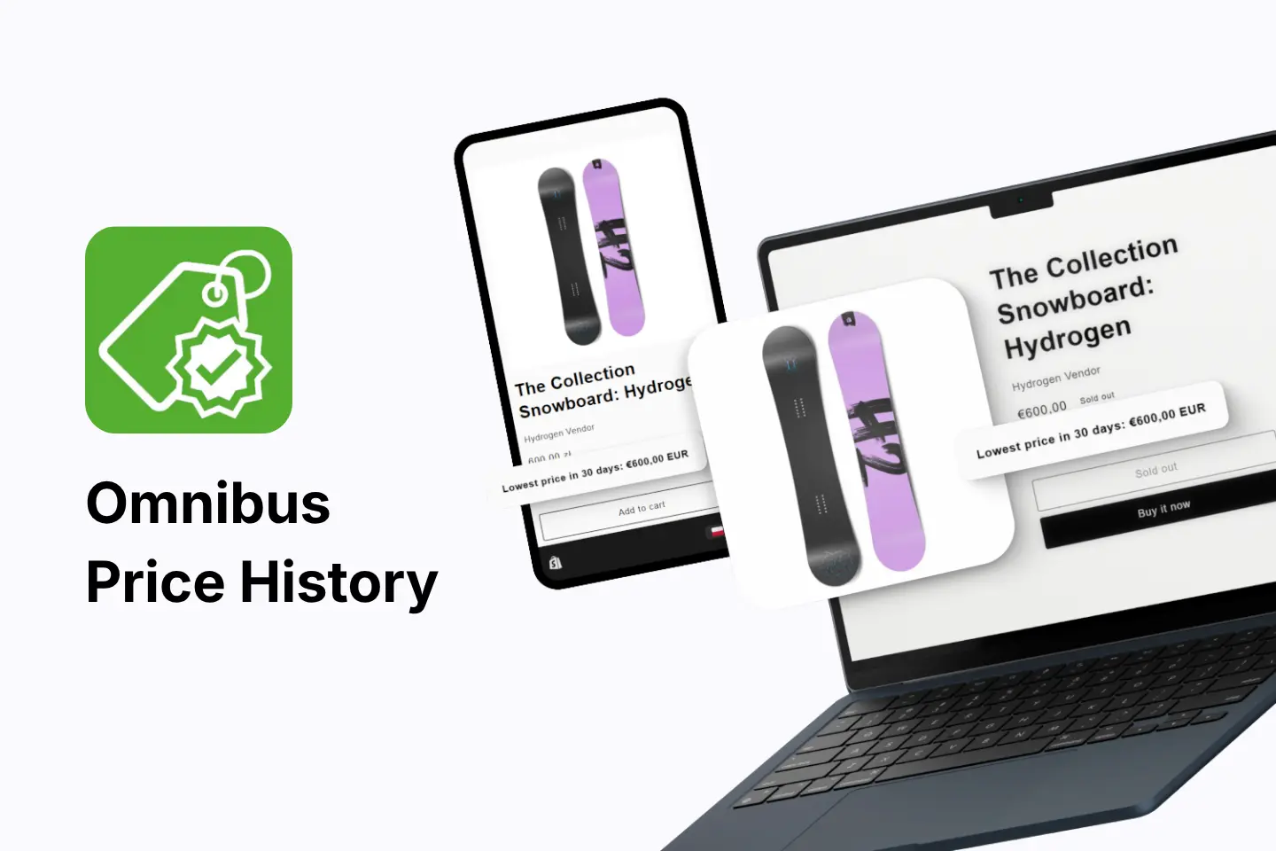 Omnibus plugin is a compliance tool for Shopify stores that automatically calculates and displays the lowest price from the last 30 days during promotions, as required by the EU Omnibus Directive. It integrates seamlessly with any Shopify theme, supports multiple markets and languages, and removes the risk of manual pricing errors.